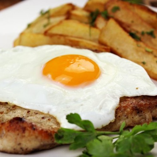 2 db grillezett csirkemell, bacon szalonna, tükörtojás, saláta. Kérjük válassz hozzá köretet
