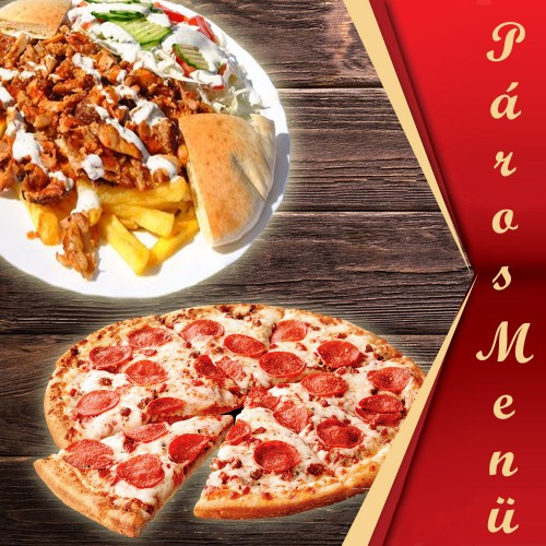 Igazán éhes vagy ? Akkor válaszd a Páros menünket ! Kérj egy Gyros tálat és válassz hozzá 19 féle pizzánkból egyet normál méretben, mindössze 1990 Ft ért !!!