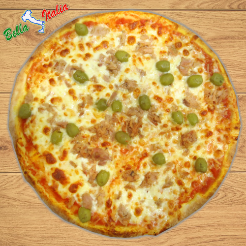 Paradicsomszósz, mozzarella sajt, tonhal, olívabogyó, oregano